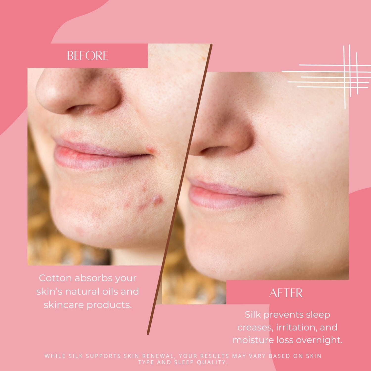 Silk creates less friction than cotton, so your skin glides smoothly over the pillowcase—helping to prevent those pesky morning creases.