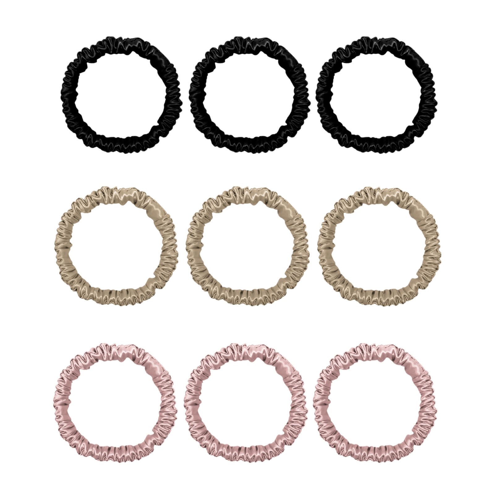 - Includes: 9 x mini silk scrunchies.