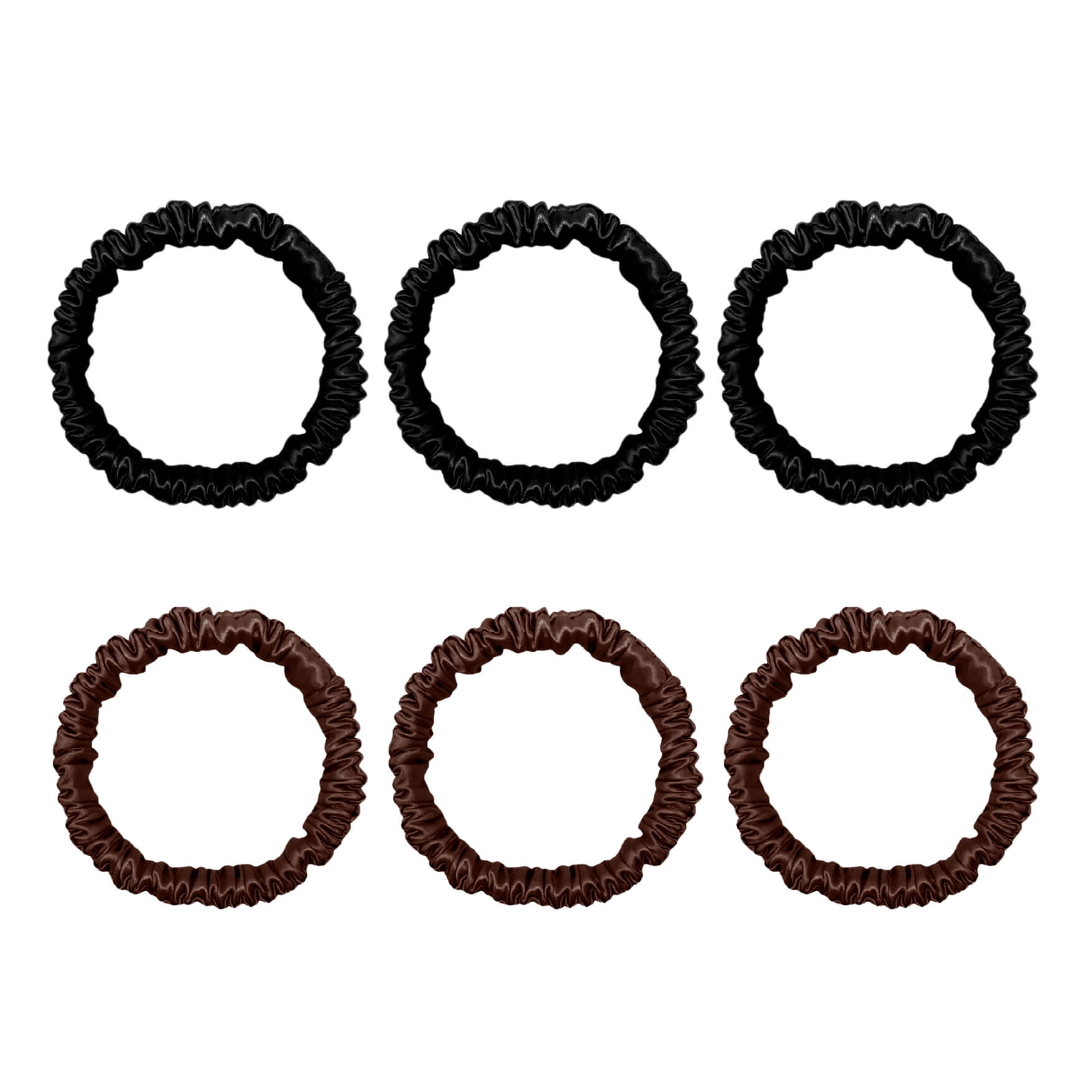 6 Pack Premium Mini Mulberry Silk Scrunchies - Black & Chocolate