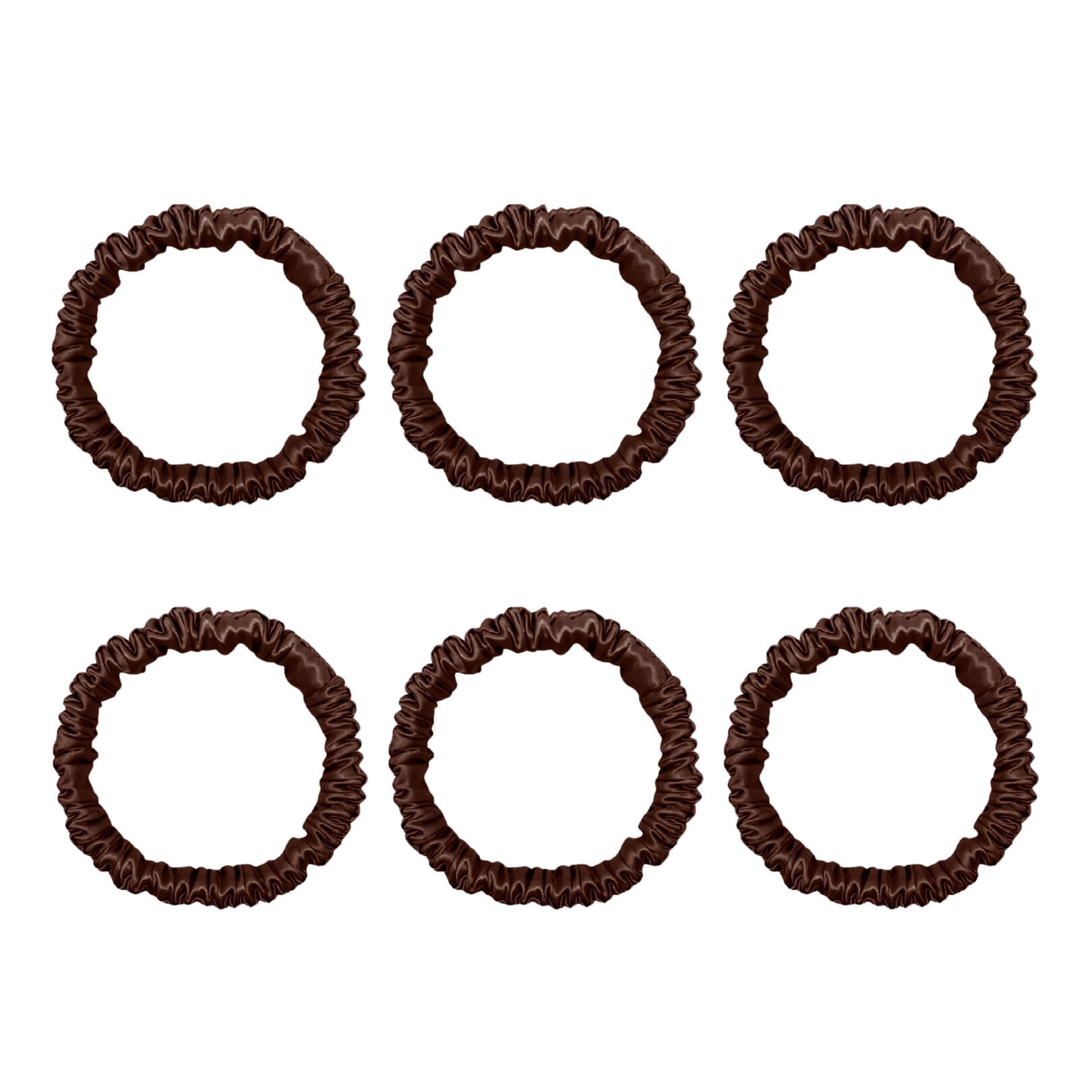 6 Pack Premium Mini Mulberry Silk Scrunchies - Chocolate