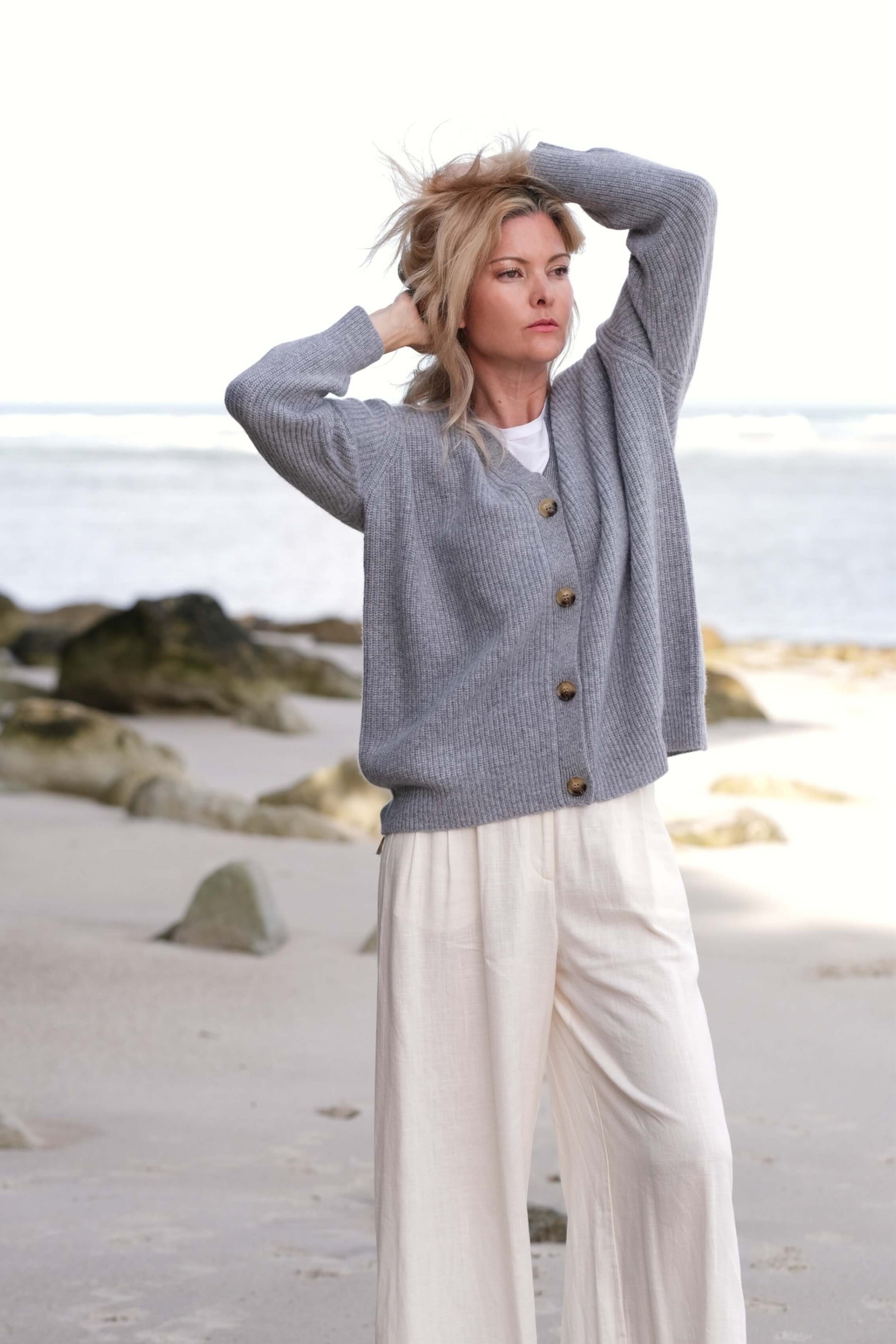 Luxe Relaxed Fit Cashmere Cardigan - Grey