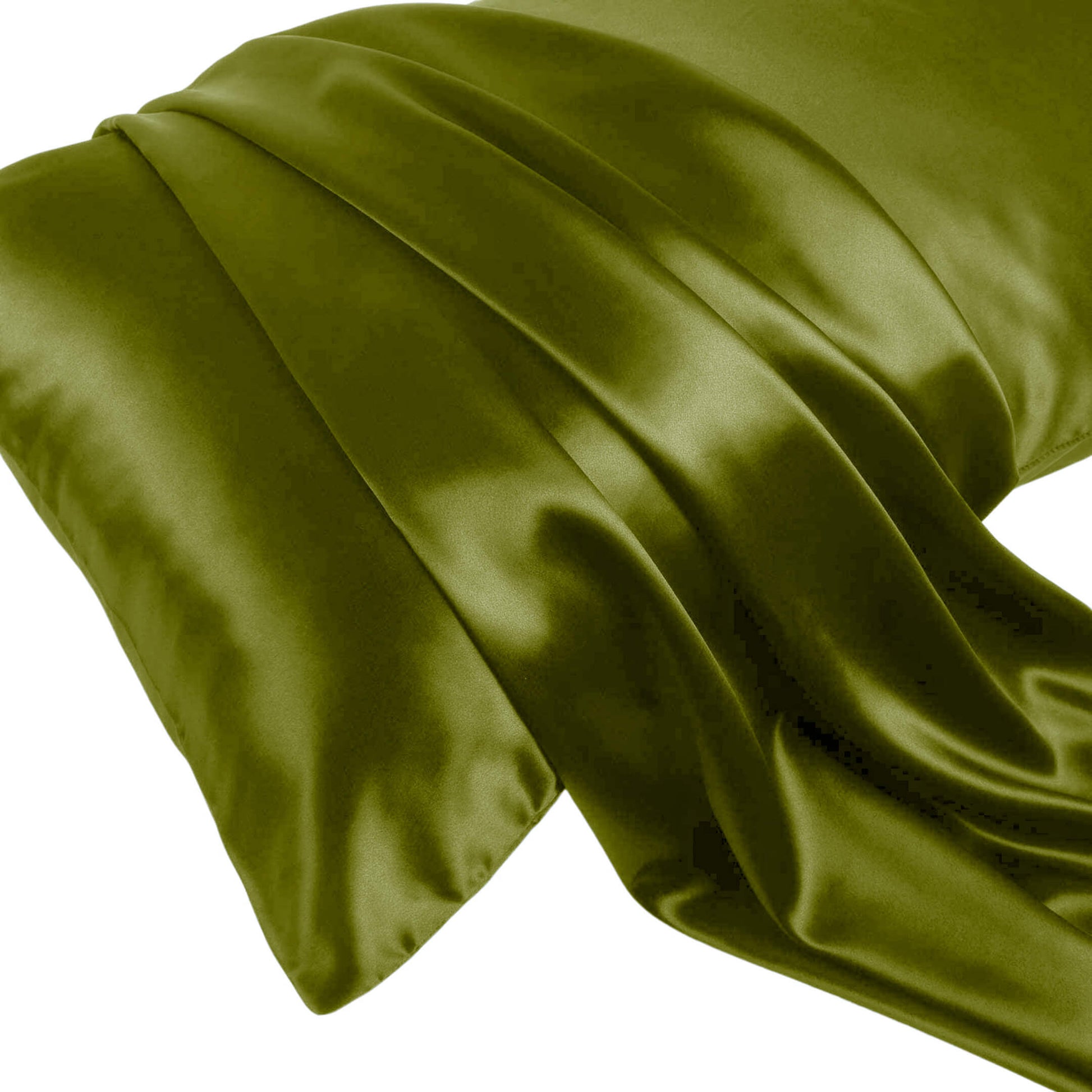 Olive Silk Pillowcase - Queen Size, Zip Closure