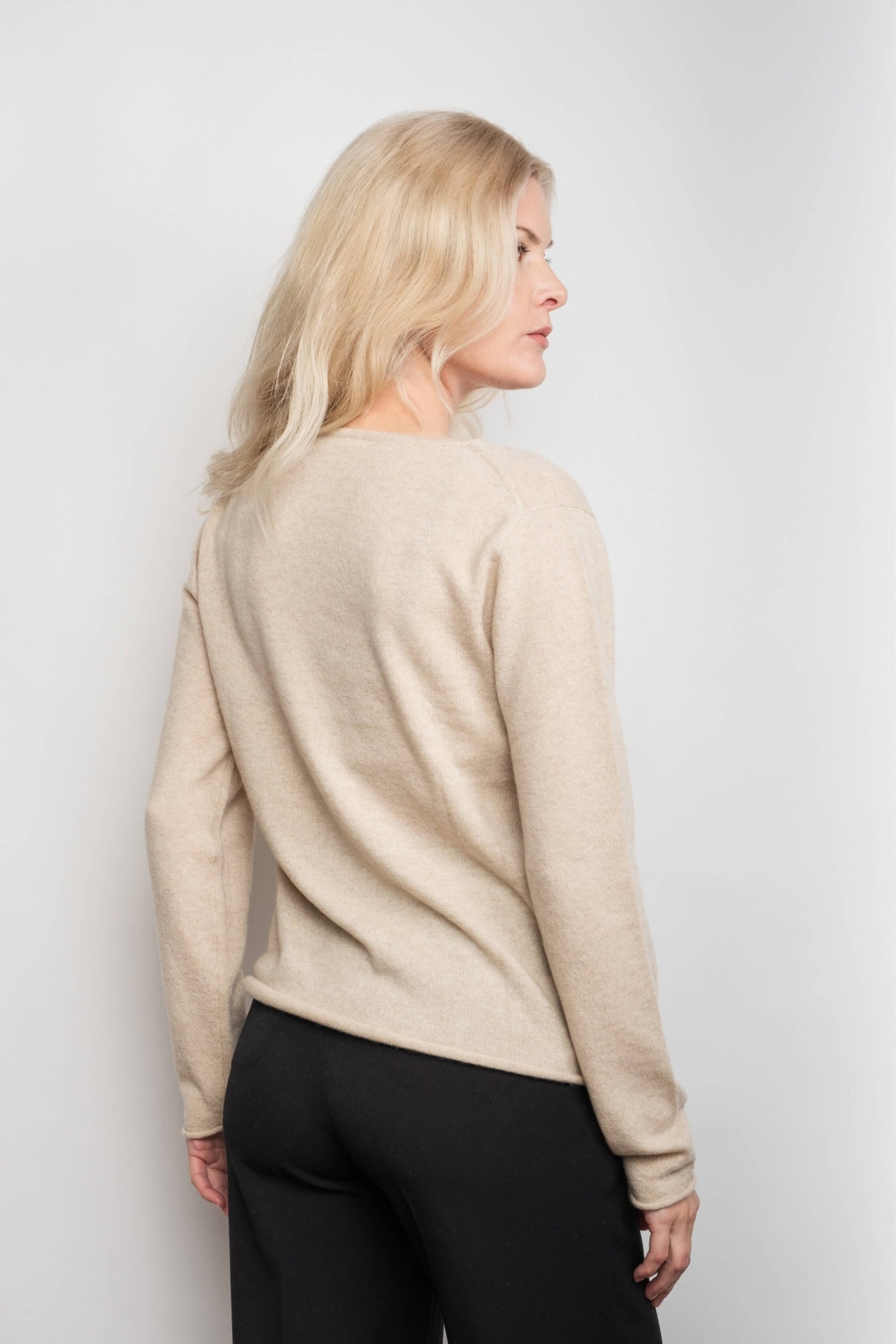 Timeless Lounge Relaxed V-Neck Pure Cashmere Sweater - Beige