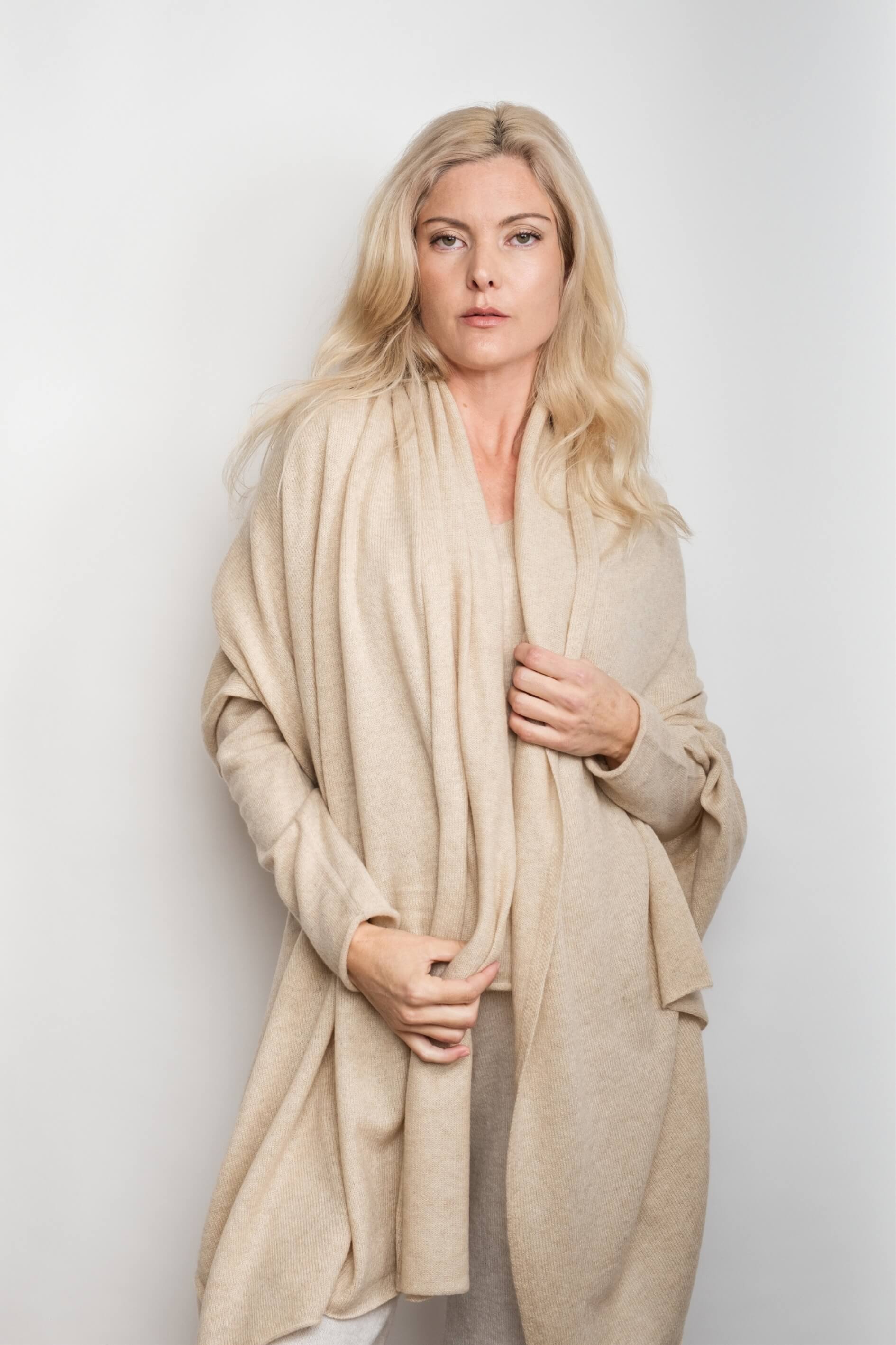 Versatile Pure Cashmere Wrap & Scarf - Beige